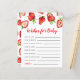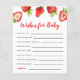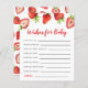 Söta jordgubbs-tema baby shower-önskningar för baby-kort med illustration av den röda frukten. Texterna är redigerbara. Perfekt aktivitet att spela under showern och kommer definitivt att bli en fin souvenir!