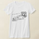 "Hämta dina fästingar på...väg 66"-damskjortor som har en av mina hot rod bilder som ser ut som en teckning. Bilden har min unika stil av fotografi.