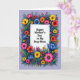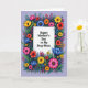 Denna kortlek är designad med en livlig blomsterkant och centrerar en vit rektangulär panel som drar blicken direkt till meddelandet. Huvudtexten sitter i mitten av panelen i svart text med gott om utrymme runt omkring för en lugn och tillgiven känsla ❤️. Runt panelen lutar en tät ring av stiliserade blommor och löv sig inåt som en vänlig omfamning, vilket antyder närhet och omsorg. Blommor i fuchsia, soligt gult, orange, djupblått och rött är konturerade i svart med ljus skuggning som ger dem ett mjukt målat utseende. Gröna blad vävs mellan blommorna och små klasar av rosa och orange bär sticker ut i mellanrummen som små delade hemligheter 🌼. Bakgrunden är en mjuk lavendelfärg som får de ljusa kronbl