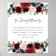 Designad för att matcha vår strålande blomning bröllopssamling, är detta eleganta botaniska tecknet perfekt för placering vid ett minnesbord eller utställning för att hedra nära och kära som har gått bort. Anpassa rubriken och brödtexten (visas med "I kärleksfull minne" och en kort dikt) omgiven av frodiga ädelstensfärgade vattenfärg blommor och lövverk.
