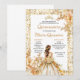 Denna quinceanera-inbjudan har ett elegant guld- och creme tema med invecklad lace-liknande kanter, Radian Bloom blomaccent och ömtåliga fjärilar. I mitten finns en illustration av en flicka i en lyxig guldaccentuerad klänning med Radiant Bloom-blommor, som ger en touch av grace och sofistikation. Kombinationen av script- och serif-typsnitt förstärker dess raffinerade och firande stil, perfekt lämpad för tillfället.