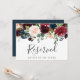 Ange reserverat sittplats på ditt bröllop med denna stilrena ädelstensfärgade blomskylt. Anpassa med två rader anpassad text i kalligrafi och modern blockbokstav (visas med "Reserverat" och namnet på gästen med reserverat säte), inramad av frodiga akvarellblommor och grön lövverk i rika höstfärger/