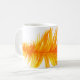 En flödande gyllene fjäder sträcker sig över kompositionen med fina, luftiga strimmor och lagertexturer som lyser i varma orange och gula nyanser. De jämna kurvorna och det känsliga linjärbetet skapar en känsla av rörelse och lätthet, vilket ger fjädern en elegant, lysande närvaro som känns graciös och visuellt fängslande.