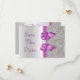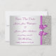 Personliga bröllopskort "Save The Date". Eleganta anpassade silver- och strålande orkidé-färgade - Pantone årets färg 2014 - dubbelsidiga platta "save the dates" med vacker glittrig tryckt glittermönster, söta blanka tryckta vektorsnören och band och vacker, stilren tryckt bild med diamantglitter och rosa text på silverfärgad gradientbakgrund. Dessa klassiska, glamorösa, moderna lila / lilafärgade / lavendelfärgade och silverfärgade formella anteckningskort är dekorerade på båda sidor och tryckta på ditt val av invitationspapper. Vackra, trendiga, moderna, dubbelsidiga kort med kvinnlig glans och glamour. Observera: Alla inbjudningar på Zazzle har platt tryckta bilder. Jag har matchande produkter för bröllop i min butik. Text, teckensnitt och teckensnittsfärger är alla anpassningsbara för att passa dina behov