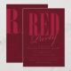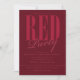 Strålande röda festsedlar. Monokroma röda och moderna festsedlar med stilfull text i rött på röd bakgrund. Detta är ett bra val av inbjudan för födelsedagsfester, möhippor, sweet sixteen-fester, vuxenfester och mer! Ytterligare festtillbehör och dekorationer finns tillgängliga på Metro-Event.com och Metro-Events på Zazzle.