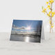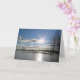 En strålande sol på en blå himmel, som reflekteras i vattnet nedan, är en fredlig scen för att skicka ditt meddelande om "tänker på dig"; "tack"; "med kondoleanser"; omsorg, omtanke, uppmuntran eller helt enkelt "ett meddelande för att säga hej". Insidan är tom, så att du kan lägga till din egen personliga hälsning.