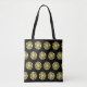 Strålande solmönster på svart bakgrund shoppingväska.