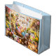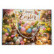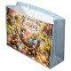 Påskgodis påsar med en lysande kors, vårblommor och färgglada ägg. Perfekt för påskgodis, kyrkliga evenemang och festlig gåvoinpackning.