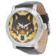 Strålande vargansikte upplyst av gyllene ljus armbandsur