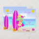 Strand Baby Shower. Surfande Bebis Söt Baby Shower, Strand Baby Flicka Rosa och Teal blå Gul solhatt, Rosa Surfbräda, Strandboll, Solglasögon, Blommor, Tunt badlakan, Flip flops, "det är en tjej" Sommar Baby Shower. Strandfest Inbjudan.