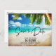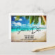 Tropiska strandbröllop spara datum vykort för ditt destinationbröllop. Anpassa med dina bröllopsdetaljer på framsidan och baksidan av kortet.