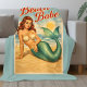 Lägg till en touch av kustnära kul till din inredning med denna fräcka, mjuka och mysiga tealblå filt. Denna strandbrud njuter av lite tid utanför vattnet och under solen. Den vackra vintageinspirerade pin-up havsfrun poserar medan hon förföriskt viftar sin juvelgröna stjärt. Denna fantasifulla twist på en klassisk retro pinup-plakat är det perfekta tillskottet till din strandhusdekor. | Den matchande kastkudden finns tillgänglig i min butik.