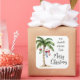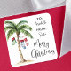 Ge din presentförpackning en tropisk twist med denna fyrkantiga julpresenttagg med ett lekfullt akvarellpalmer som är dekorerad med färgglada julstrumpor som hänger från bladen. Perfekt för strandteman eller julfiranden på platser som Florida, Hawaii eller Bahamas.