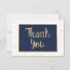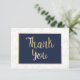 Detta eleganta och moderna tacksamhetskort har en illustration av sjöstjärnor och sanddollar över en vit bakgrund samt en marinblå låda med en guldbård och orden "Tack" skrivna i ett modernt borstskrift (simulerad folie). Baksidan är tom så att du kan skriva en personlig hälsning. Ett vackert och klassiskt sätt att tacka människor som en del av ditt strand- eller marin-tema evenemang.