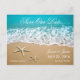 Det här moderna kortet är idealiskt för att tillkännage ett strand- eller destinationbröllop. Det har en vacker bild av en strandkant med sand och två sjöstjärnor. Det här kortet är perfekt för ett bröllop vid havet. Lägg till dina egna evenemangsuppgifter.