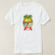Mele Kalikimaka, hawaiibo för god jul. Strandkonst med en palmträd som dekoreras med jul, tänder och prydnadar.