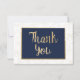 Detta eleganta och moderna tackkort har en illustration av sjöstjärnor och sanddollar på en vit bakgrund samt en marinblå låda med en guldram och orden "Tack" skrivna i ett modernt borstskrift (simulerad folie). Baksidan är tom så att du kan skriva ett personligt meddelande. Ett vackert och klassiskt sätt att tacka människor som en del av ditt strand- eller nautiska temaevenemang.