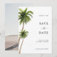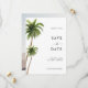 Sätt tonen för din stora dag med denna strand palmtre tropiskt destination bröllop spara datumet. Med akvarell palmer och en exotisk strand vibe, är det perfekt för Hawaii, Mexiko, Los Cabos, Miami eller någon kustfirande. En blandning av modernt skript kalligrafi och boho flair gör det ideal för semester, högtid eller resa spara datum - enkelt chic för dina soldränkta bröllopsplaner!