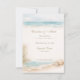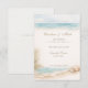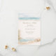 Tillkännage din bröllop med tidlös kustnära elegans. Detta strandtema "save the date"-kort har en mjuk akvarell havsbild med varma sandtoner, ömtåliga snäckskalaccents och raffinerad typografi inspirerad av romantiska strandfiranden.