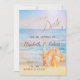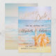 Solnedgång på tropisk strand med sjöstjärnor. Vacker save the date som kan anpassas med ditt namn. Välj knappen "anpassa" för att ändra teckensnittsstil, färg och storlek.