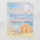Solnedgång på tropisk strand med sjöstjärnor. Vacker save the date som kan anpassas med ditt namn.Välj "anpassa"-knappen för att ändra teckensnittsstil, färg och storlek.