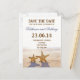 Romantiska Spara datum vykort med par söta sjöstjärnor på stranden nära havet eller oceanen.