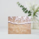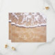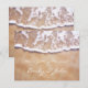 Denna spara-datum-inbjudan har en bild av en strand, med vattnet som kommer in över sanden.
