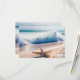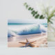Vacker svarskort för ditt strandnära, tropiska, ö-, casualbröllop. Vacker bild på en strand med rullande turkosa vågor, sanddollar och sjöstjärna. Anpassa med din text. Skapa brölloppsinbjudan enligt dina specifikationer. Bilden skapades med ai. #generativt innehåll