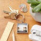 Strand vid havet fyrkantig silverfärgad nyckelring