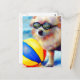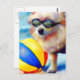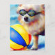 Denna bedårande Pomeranian hund har kul i solen på stranden med en strandboll och simgoggles för att hålla vattnet borta från hennes känsliga ögon. Intäkterna från försäljningen av detta konstverk går till att stödja SNIPnow.org, som hjälper till att sterilisera och kastrera husdjur.