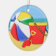 Strandboll, hink & skyffel på kusten julgransprydnad keramik