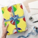 Slå in papper som visas med en gullig strandboll, skriv ut på en gul bakgrund. Skräddarsy detta objekt eller köp, som är.