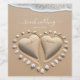 Lägg till en romantisk kustnära touch till din fest med våra Beach Wedding Sand Hearts-vinflasketiketter. Med två fyllda hjärtan skapade av sand, omgivna av ett större hjärta gjort av ömtåliga snäckor, ger denna eleganta design strandnära skönhet till ditt bord eller presentdisplay.