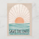 Spara datumet postkort i en estetisk färgblock sol och havsvågor design, perfekt för din strandbröllopsfirande. Be familj och vänner att reservera datumet för ditt destination strandbröllop med dessa spara datumet postkort. Anpassa med din bröllopsinformation med hjälp av mallen. Kontakta mig om du behöver hjälp, jag hjälper gärna.
