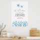 Välkommen gäster till din strandbrölloppshelg med detta eleganta välkomstskylt för bröllop, med akvarellstjärna och havskoral i fantastiska blå nyanser. Inspirerad av havets skönhet sätter denna kustinspirerade design tonen för en perfekt strandfirande.