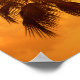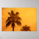 Sommarstranddesign med handflatan träd. Tropiskt exotiskt ömål. Vintage och retrofoto. Orange himlar.