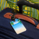 Stranden beskådar bagagebricka