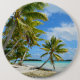Knäppas med en hängande palmträd på en vitsandstrand av en tropisk ö i Stilla havet som hör hemma till den Tahiti skärgården franska Polynesia.