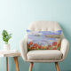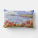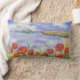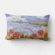 Nätt och färgrik dekorativ kudde av en strandplats och några röda vallmor.