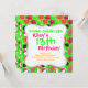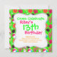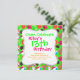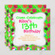 Ett roligt sommarstrandfesttema med flip flops, solglasögon, strandbollar, blommor, surfbrädor och margaritasallader på en ljusgrön bakgrund.