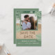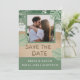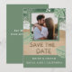 Sagegrön och turkos modern strandstämning med foto, spara datum sandbokstäver och personligt foto. OBS: Text, teckensnitt, färger och element är helt anpassningsbara med hjälp av designverktyget.