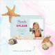 Fira din lilla sjöjungfru med detta illustrerade barnens födelsedagsfest tack-kort med en handritad sjöjungfru och strandscen. Denna inbjudan har en anpassningsbar baksida som innehåller en sektion för festdetaljer och ett foto av födelsedagsbarnet. Variationer i sjöjungfruns fysiska egenskaper tillgängliga!