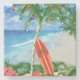 Glad helg från de varma sandiga stränderna av din favorit- tropiska ö sätter på land. Palmträd som dekoreras med julprydnadar och ljus, med en retro surfingbrädabenägenhet mot julgranen.