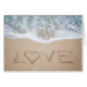 En sötsak, strandplats med ett meddelande som är skriftligt i sanden. Fotograf: Laura Marshall