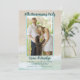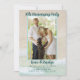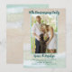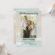 Bröllopsjubileumsfestinbjudan för firande av vilket äktenskapsår som helst. Strandsand och vågor i bakgrunden med tropiskt blågrönt vatten som sköljer mot stranden, är bilden bakom ditt foto och text. En vertikal fotomall är konturerad i havsblå färg. Texten är mörk blågrön med minimalt med ord. Jubileumsåret står högst upp på fotot, med parets namn under. Versaler, tryckt festtext läggs till med maximalt fem rader. Baksidan har också en strandscen.