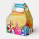 Vågor på en sandstrand och solbadare under färgglada parasoller, gavelpresentboxarna är roliga för alla sommaraktiviteter.