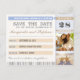 Modern sparar datumdesignen med stjärnfiskparet på stranden, ditt foto och biljett stil-designen. Bäst för strand-, tropiska och destinationsbröllop.