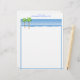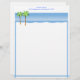 StrandShoreline med brevpapper för anpassningsbar för palmträdblåtthav. Presenterar en kust- bästa gränsdesign av 2 palmträd i sanden på stranden, med havsblåttvatten och blå himmel i bakgrunden. En matcha blått fodrad gräns fortsätter längs sidorna och grunden. Ett vitutrymme upptill, som en titelrad, ges för din monogrammärkning med en matcha blåttstilsort. Tillfoga precis din affär eller personliga namn och adress. Om en affär, där är rum under adressen för ditt primat av en av efter: ett telefonnummer, eller en website eller e-postadress. En rolig stilfull design som är både contemporaryn och klassikern.