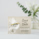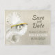 Vår "Save the Date"-kort för strandbröllop visar tre vita och silvergråa snigelskal, inklusive ett ostronskal med guldkant och en skimrande pärla inuti. Texten på kortet är tryckt i nyanser av mörkgrått och skals vitt - färgerna på själva skalet. Bakgrunden är en texturerad pärlaktig silver, perfekt för en strand- eller nautisk look. Koordinerande artiklar inkluderar ett 5 x 7 platt kort (med kuvert), en returadressetikett och rund klistermärke/kuvertförsegling. All text kan enkelt revideras i personaliseringsmallen.