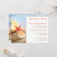 Vill du ha en prisvärd efterfest för att fira ditt äktenskap på en tropisk strand? Även om du rymt till tropikerna kan du fortfarande ge din familj och vänner en inblick i den glädje ni delade på den speciella dagen med denna strandreception med sandstrand, sjöstjärna och kammusselskal-inbjudan. Texten är i tropisk orange och sandbrun men kan ändras till valfri färg.